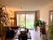 Living room is open plan with breakfast bar between the kitchen. Large glass south facing doors open onto the covered patio and communal garden