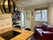 The open-plan kitchen and dining area are perfect for daily living, featuring a breakfast bar with seating, sleek countertops, and integrated appliances, including a hob, oven, and washing machine. Large windows and a glass door allow plenty of natural light to flow into the space, creating a warm and inviting atmosphere. Outside, enjoy a private patio area, ideal for relaxing or entertaining.