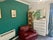 The main living area boasts a vibrant, complemented by comfortable furnishings. The sleeping area is separated, creating a sense of privacy, with built-in wardrobe storage and modern decor.