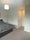 The room is furnished wiith double bed, wardrobe, chest of drawers and a smart TV.