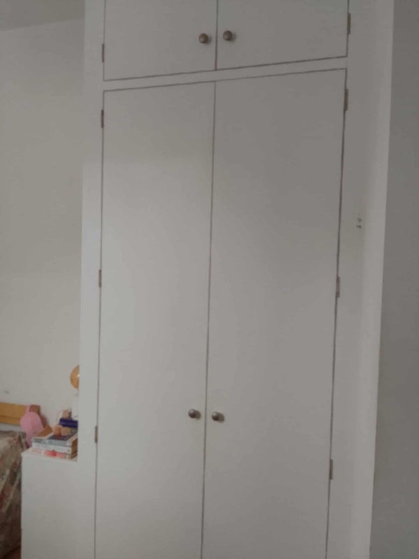 🛏️ Desk, chair, side table, & built in wardrobe, double bed.