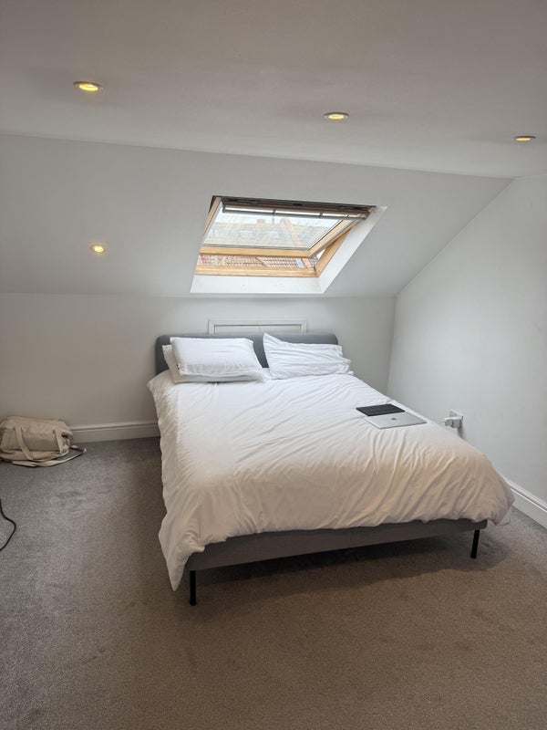 Room is on its own separate top floor. Spacious house with a separate kitchen and living room - patio outside which is class in the summer. You’ll only be sharing a bathroom with one other person.