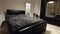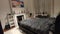 The room is fully furnished with a double bed and a wardrobe with sliding doors.