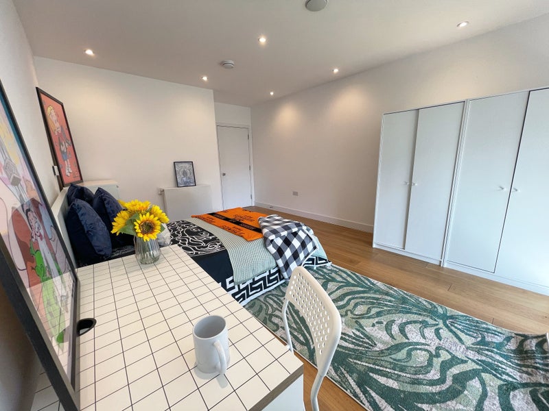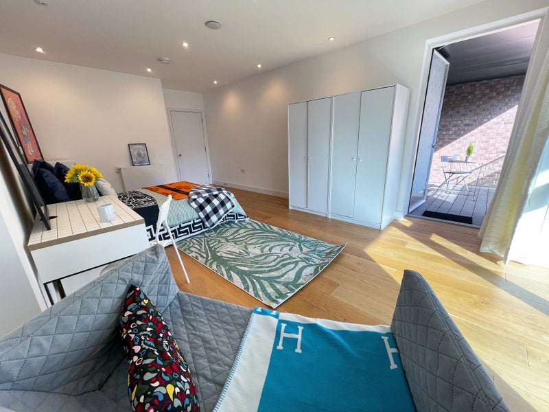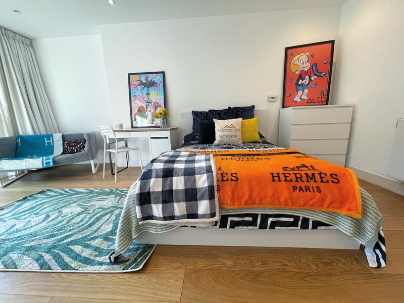 This beautifully designed lounge-sized room offers a peaceful, well-furnished retreat in a high-end North Greenwich flat. Part of a clean, modern 4-bed, 2-bath apartment, it’s ideal for remote workers and city commuters alike.