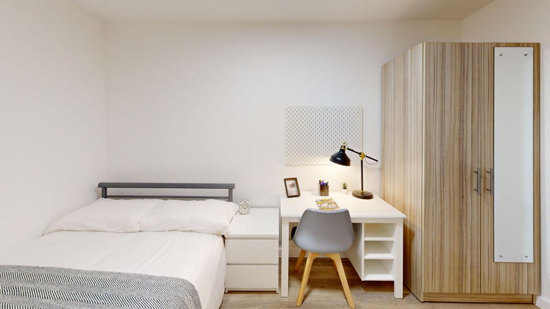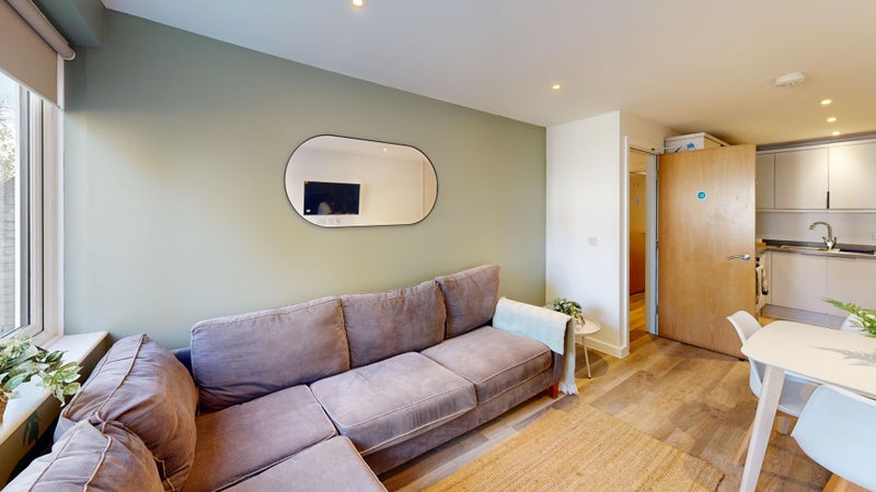 This contemporary flat features a spacious communal area perfect for relaxing and studying together. Each of the 4 bedrooms includes modern furnishings, with plenty of natural light.
