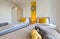 Bedroom 2 has x2 single beds and access to the main balcony . This room is also equipped with black out blinds and smart TV.