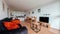 The open plan living space comes with private balcony, smart TV and pull out sofa bed.