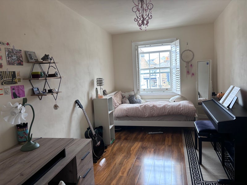 The room in FF and ready to move in. Small double bed. , cupboard and coat hanger.