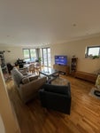 The flat is on the ground floor overlooking the canal, your room is a large double bedroom size with your own enquire, there is a legs wardrobe fitted into the room. Shared living room and kitchen that is a large space. Balcony overlooking the canal. There is decent storage space and water bill is included in the rent.