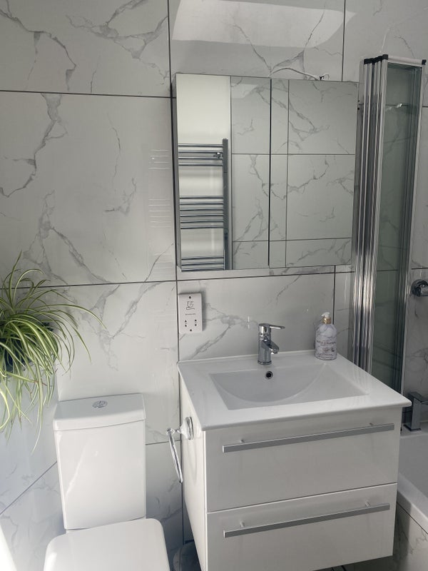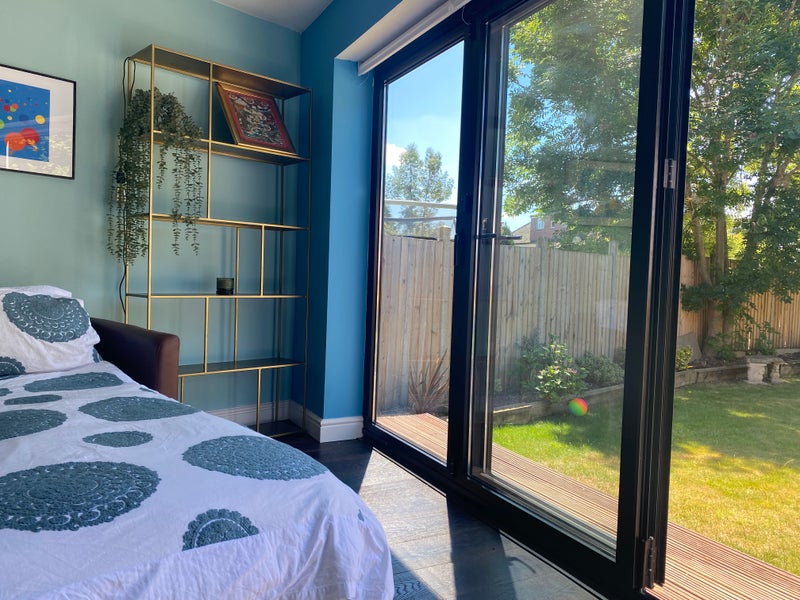 En suite annex room in the home I live in with my son. The room comes with its own section of hallway (ideal for storage) and kitchenette with kettle / sink / microwave / air fryer. You are also welcome to use the main kitchen and shared living spaces. The room has a large desk and comfortable chair and we have fast wifi so it’s ideal for working. It’s a really nice bright and airy room, it does have blackout curtains too!
