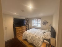 King size bed with built in wardrobes, separate room currently used as an office, own shower room