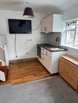 Spacious, clean, and bright double studio with a private shower and small kitchen.