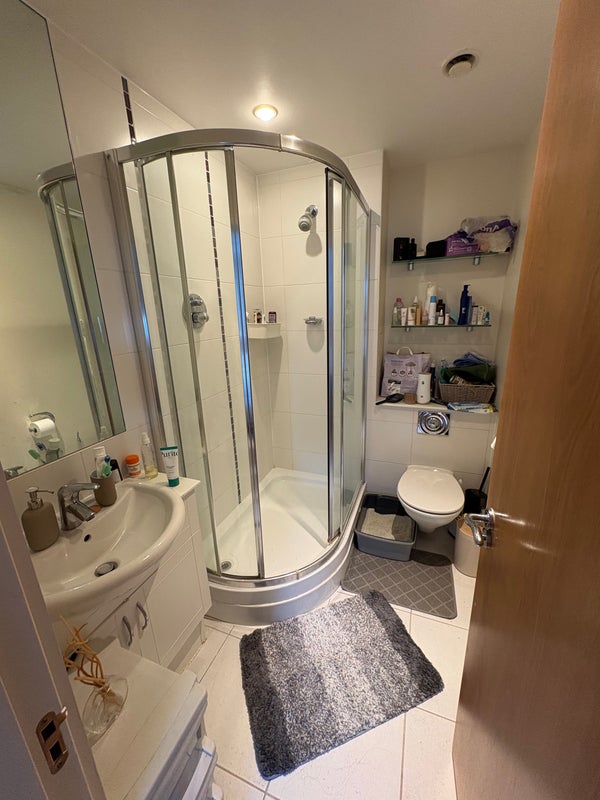 The flat is on the ground floor overlooking the canal, your room is a large double bedroom size with your own en-suite, there is a huge wardrobe fitted into the room. Shared living room and kitchen that is a large space. Balcony overlooking the canal. There is lots of storage space and water bill is included in the rent.