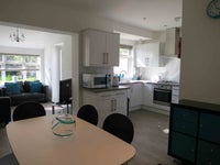 There's a large open-plan fully fitted kitchen with separate dining area and a beautiful shared lounge with sofas and large flat screen TV. Also washing machine, tumble dryer, dishwasher, fridges and freezers. Cleaner once a week included in the price.