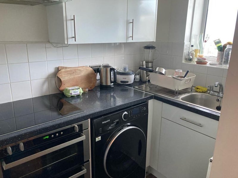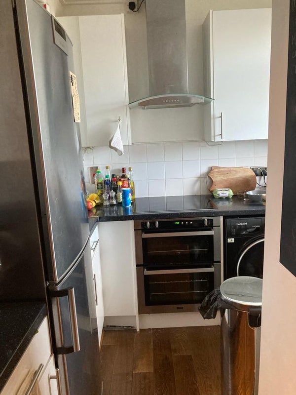 Its a 4th floor, spacious and clean flat, offering plenty of storage. The entrance to the flat is via a walkway with amazing views over Elephant & Castle, the Shard and the city behind, which we use as a balcony.