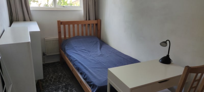 The room has a single bed, small desk, chair, book case, wardrobe, a chest of drawers and a built in wardrobe, so there's plenty of storage. The room is on top floor (2nd floor). Property has four bedrooms, one bathroom with toilet and another separate toilet on top floor, there is a large lounge and a patio garden. The property is close to two tube stations (Kennington and Elephant&Castle), there are also numerous buses to Central London. Shopping is easy with lots of choices including East Street Market. The housemates are clean and friendly (LBGTQ friendly too), all working professionals. Not a party house. If interested please send me a message.