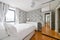 The property boasts an impressive open-plan living and kitchen area, flooded with natural light and offering direct access to a generous private roof terrace with far-reaching panoramic views, ideal for entertaining or relaxing. The well-proportioned layout extends to two spacious double bedrooms, both benefiting from floor-to-ceiling windows, enhancing the sense of light and space throughout. There are two high-specification bathrooms, including an en-suite and a Jack and Jill bathroom, along with a useful storage cupboard off the hallway.
