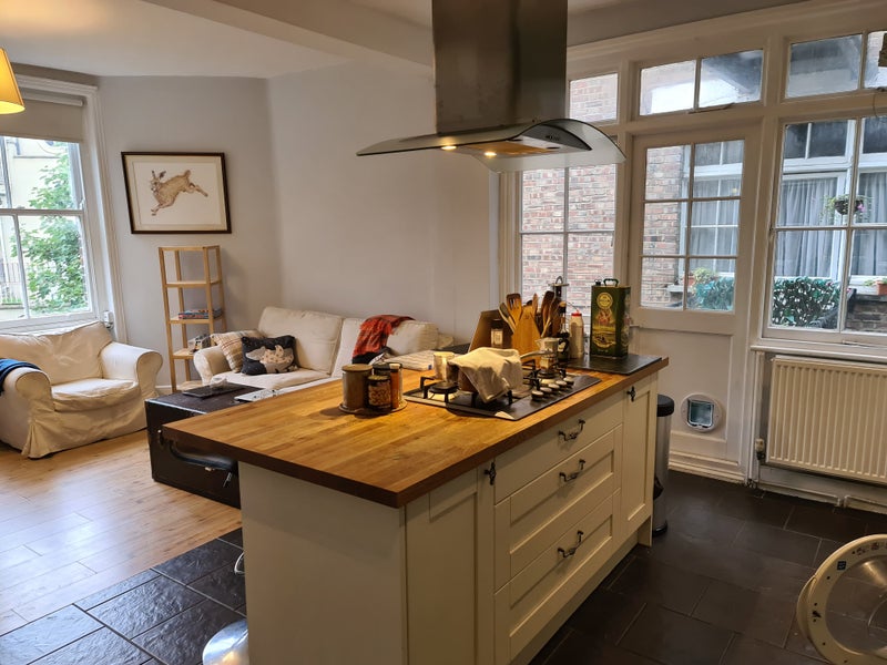 The flat is in an Edwardian mansion block and has high ceilings and big rooms. There is s large kitchen dining area.