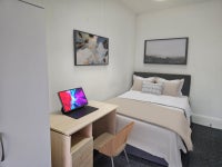 The heart of the home is the communal kitchen – fully equipped with modern appliances, including a washing machine and tumble dryer. This kitchen is perfect for preparing group meals or simply enjoying each other’s company. With a spacious layout, ample counter space, and dining seating, it’s designed to be a gathering place that feels like home.