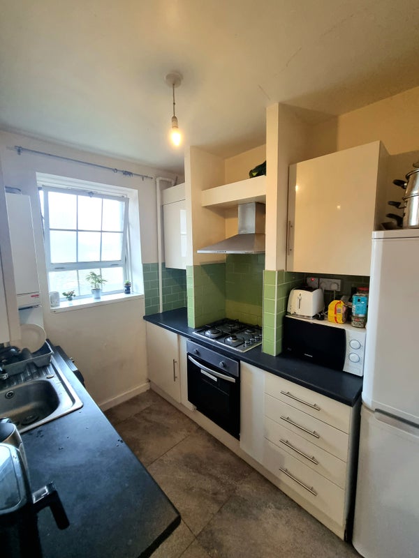 The room is furnished with a double bed, fitted wardrobe and chest of drawers. top floor view, bright and has space to work from with a desk and plenty of storage. Shared kitchen and bathroom with a separate toilet. Nice quiet household ideal for someone who values the area and transport links.