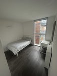 The room is fully furnished (small double bed, desk, bookshelf, mirror) and it has a huge fitted wardrobe.