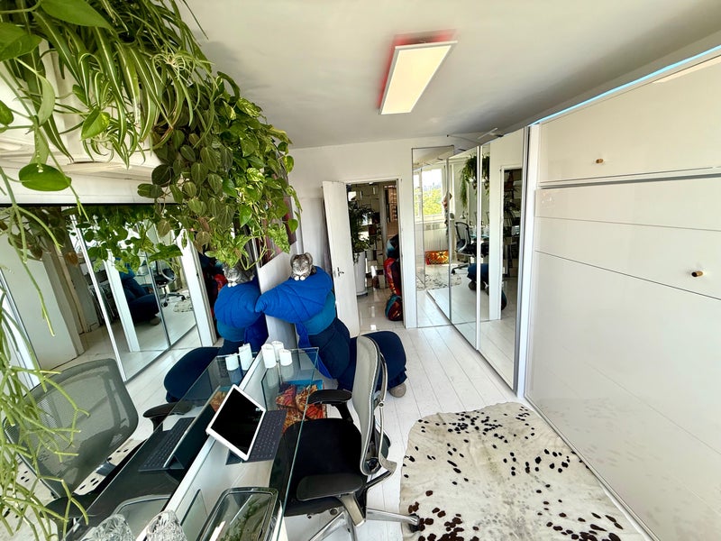 About me: I'm a gay artist from Brazil working from home. I use the lounge as my studio, and I have 3 pets – Oly the whippet and Boby and Toby the cat.