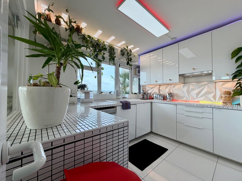 -Fully equipped – large dishwasher, washing machine/dryer, hob, microwave, oven, kettle and toaster.