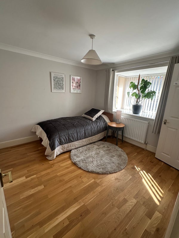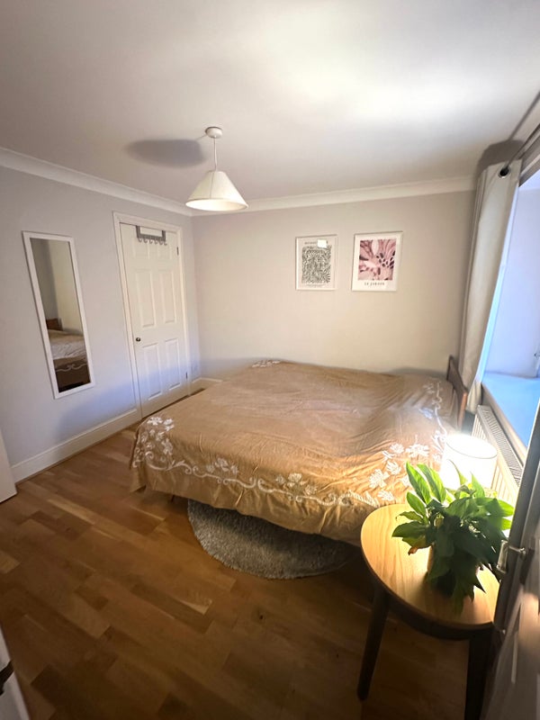 The room comes with a large double bed (that can be made into a single bed to make space for a desk) and private bathroom. The house also has a small garden.