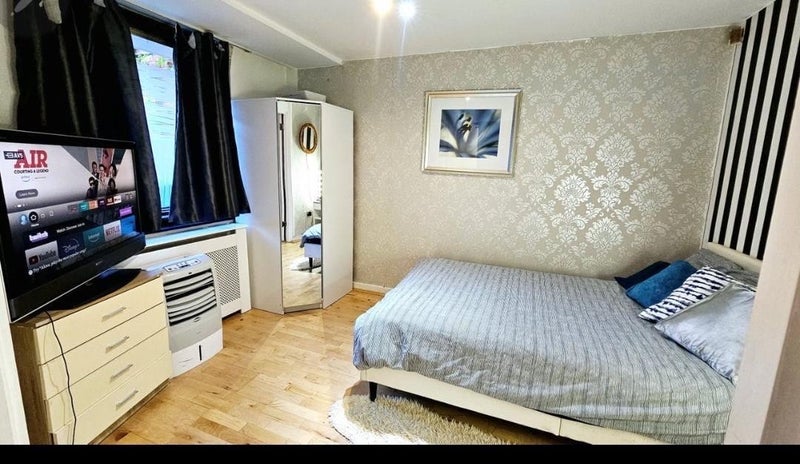 The bedroom is on the up floor in front of the 2 bathrooms. It is fully furnished, mirrored wardrobe, bed with understorage, TV 51’, office desk, bedside table, aircooler and a fan (those we keep in storage for summertime). There’s also a huge window facing the garden on the back of the house and the beautiful architeture from Pimlico Victorian Buildings of Tachbrook Street. Outside the bedroom on the hallway, There’s also a huge storage to keep suitcases and equipments plus another where we usually keep bedding and towels.