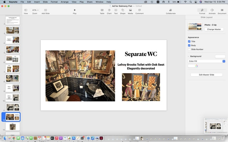 Quiet, with no neighbours left, right, behind or above South facing with good light and large windows Friendly building with community spirit