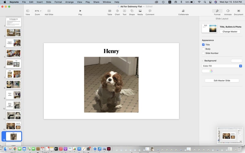 In residence is Henry, a very cute King Charles Spaniel and his minder