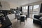• Modern Open-Plan Living Area: The kitchen and living area feature a sleek gloss-finish kitchen equipped with an electric hob, extractor fan, oven, fridge freezer, microwave, washer/dryer, dishwasher, and ample storage space for cookware. The living area is furnished with a comfortable sofa and TV, leading to a balcony perfect for relaxation during warmer months.