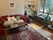 The main living area is open plan and is nicely furnished with sofas, plants, record player and a big TV. There is a kitchen dining area and a small backyard with chairs.