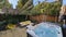 🌳 The private garden features a Jacuzzi, an outdoor table, parasol & chairs.