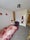 Lovely carpeted bedroom (4x3m) with 4ft sofa bed, mattress topper, desk and chair, TV, bookshelf, 2 cupboards, leather bucket sofa, thermal blinds and blackout curtains.