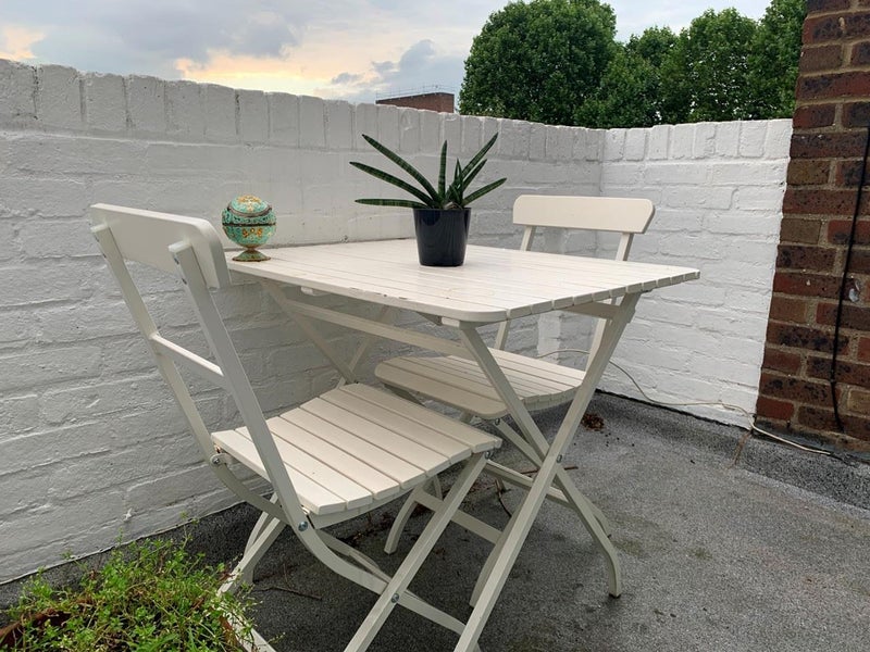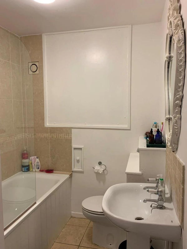 Two bedrooms available in three-bedroom light, bright split-level maisonette is available to rent from late March.