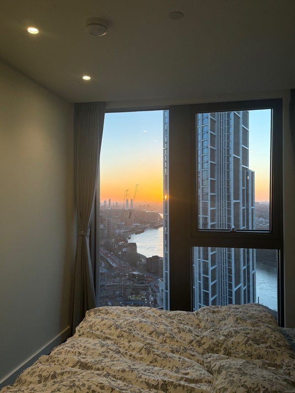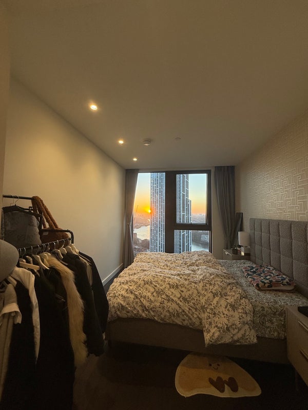 Situated on the 28th floor with floor to ceiling windows the property is flooded with natural light and has ample storage throughout, a sleek integrated kitchen, large bedroom with built in storage and a winter garden overlooking the River Thames and London City.