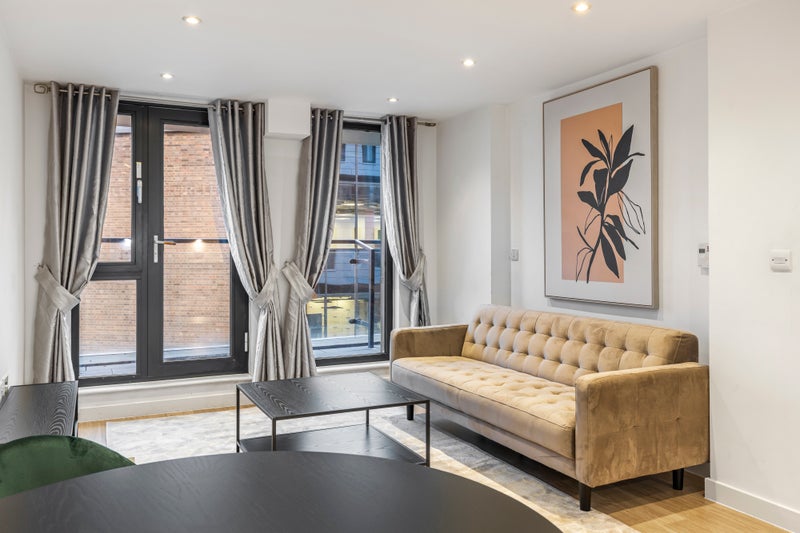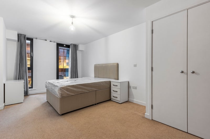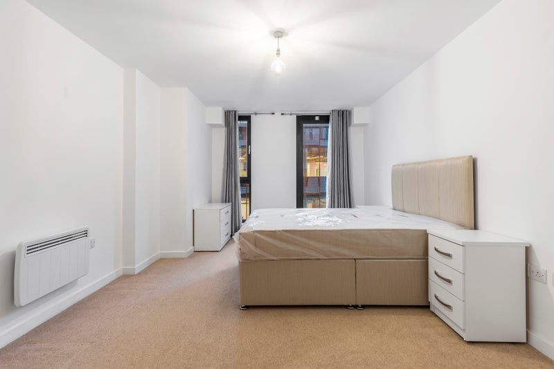 This second floor apartment has an open plan kitchen/living area with direct access to a private balcony. The kitchen comes complete with a range of fully integrated appliances including dishwasher and washer/dryer.