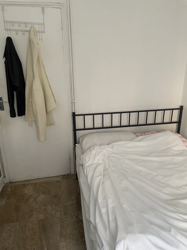 The room comes fully furnished with a double bed, mattress, and built-in wardrobe, and has plenty of natural light with a view of The Shard. It’s cosy and comfortable.
