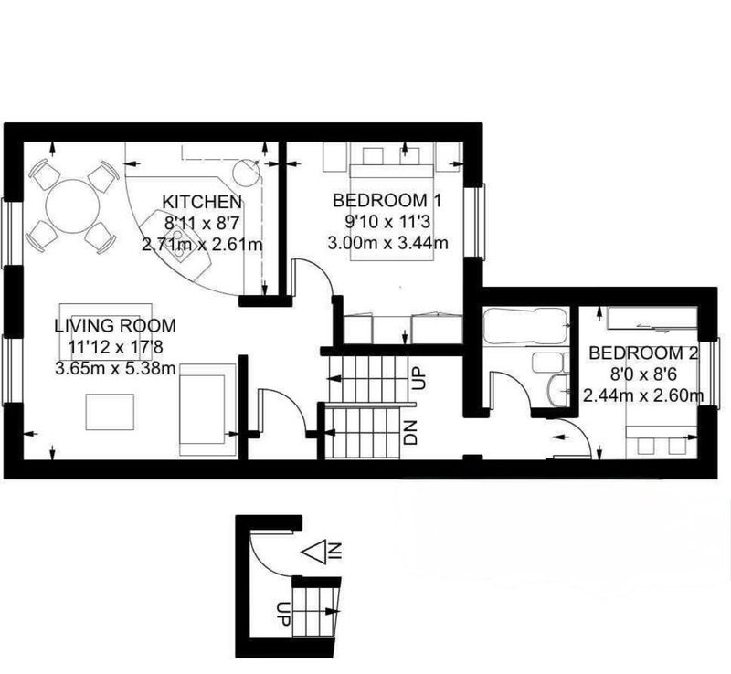Split-level with two double bedrooms, a shared bathroom, cosy living room, and open-plan kitchen. Plus a big, clean attic for extra storage.