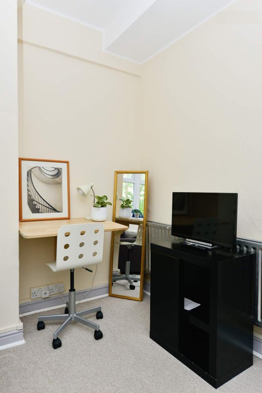 You'll get a fully furnished one bed studio flat with separate brand new kitchen, bathroom in clean and good working condition, ample storage space in every room, furniture, bed and bedding + towels + fully fledged kitchen with cooking utensils.