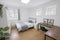 The room is fully furnished with a comfortable double bed, wardrobe, dresser, and an L-shaped desk — perfect for working from home. It also gets plenty of natural light on sunny days, creating a warm and comfortable space.