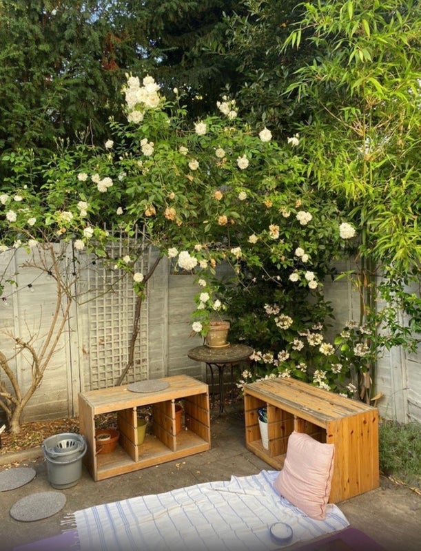 - There's a small garden, a comfy well decorated living room, and a well-equipped kitchen