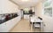 The kitchen has a huge amount of storage and two large fridge freezers, so there’s plenty of room for everyone’s belongings. There’s a large dining table, a sofa and access to the garden. In the basement you’ll find a whole separate laundry area with separate washer and dryer.