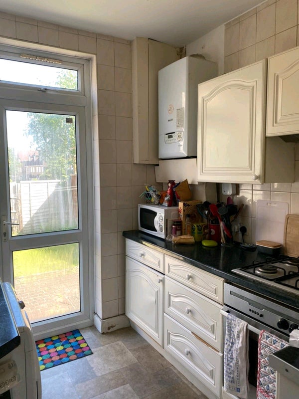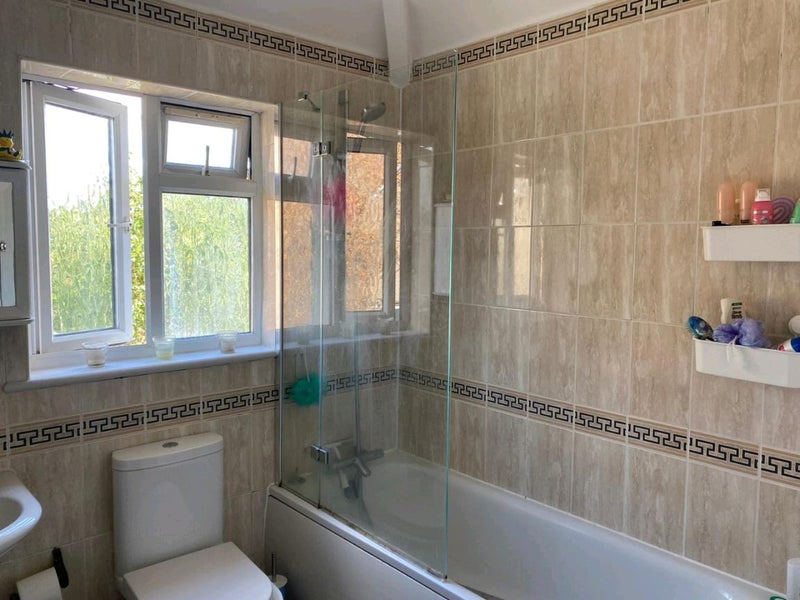 The bathroom with a bath and shower and kitchen are shared and we have a large common area with a dining table plus a nice sized back garden that is lovely during the summer with patio seating.