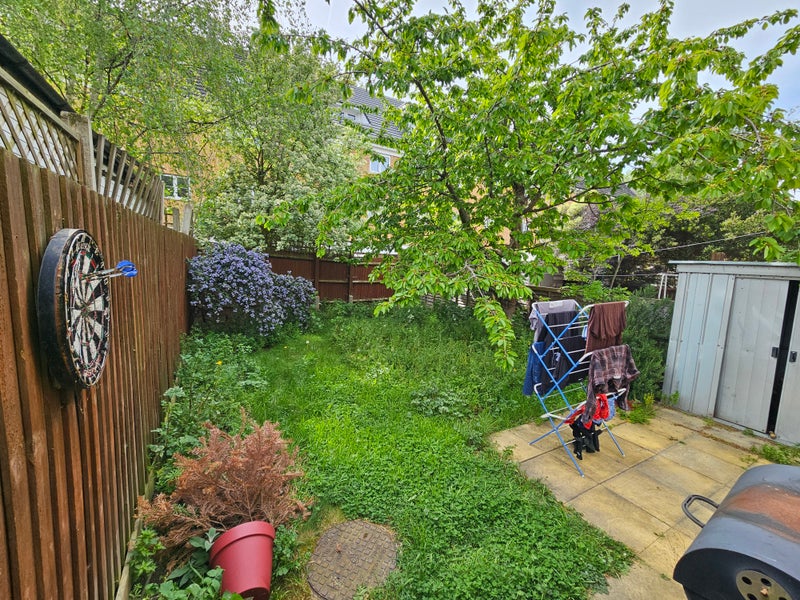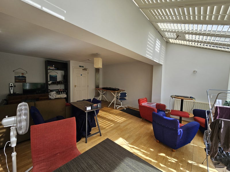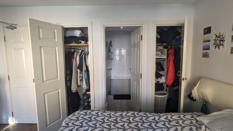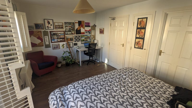 The house is spacious, bright, and located in a gated close. The room is located on the first floor, and has en-suite access to a shared bathroom (there is also an external door, and this bathroom is shared with one other room). The room has a good amount of inbuilt storage with two closets, and a Juliet balcony which is pleasant in the summer.