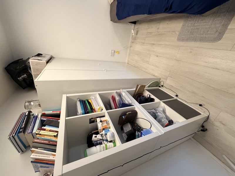 - Fully furnished: Bed, wardrobe, storage cupboard, desk, chair, fan.