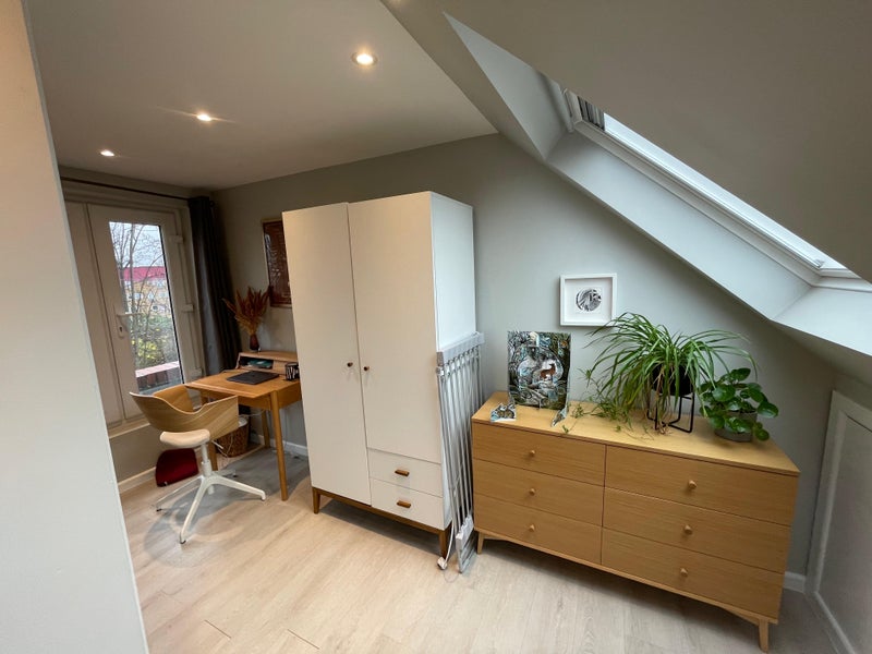 Double room in beautiful spacious (95sqm) furnished two-bedroom, and 1 study/guest room, two-bathroom (one en suite) terraced house with open-plan living and kitchen, located on a quiet cul-de-sac.