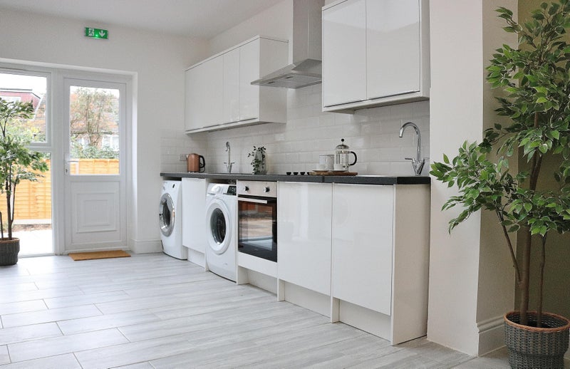 2 double equipped kitchen, with extra small kitchen in the first floor with washing machines and dryer.