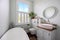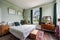 Single aspect double room with marble fireplace and storage. Private small WC and sink. .Double bed, chest of drawers and mirror, built in cupboard. Furnished or can bring own desk if preferred.
